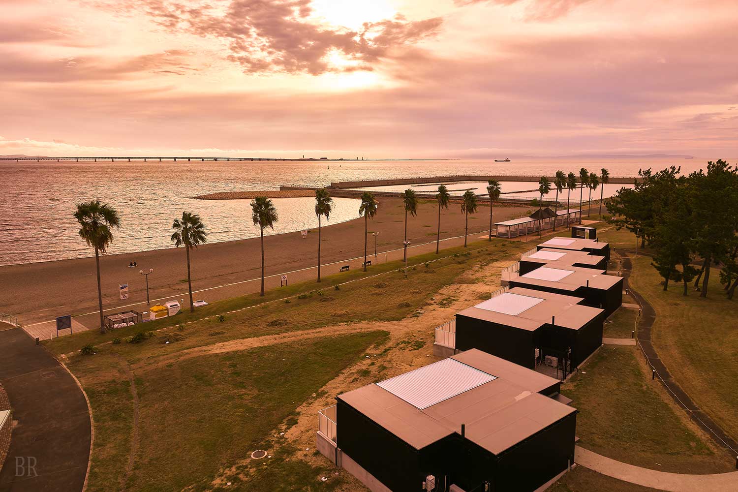 大阪市内から車で約30分の海沿いに位置し、白砂青松の絶景と夕陽が魅力。全サイトに電源完備・ペット同伴OKで、初心者でも快適なキャンプ体験が可能です。関西でも希少なRVパーク(キャンピングカー用6区画)を備え、手ぶらBBQやマリンアクティビティも楽しめる、ラグジュアリーな海辺のアウトドアリゾートです。