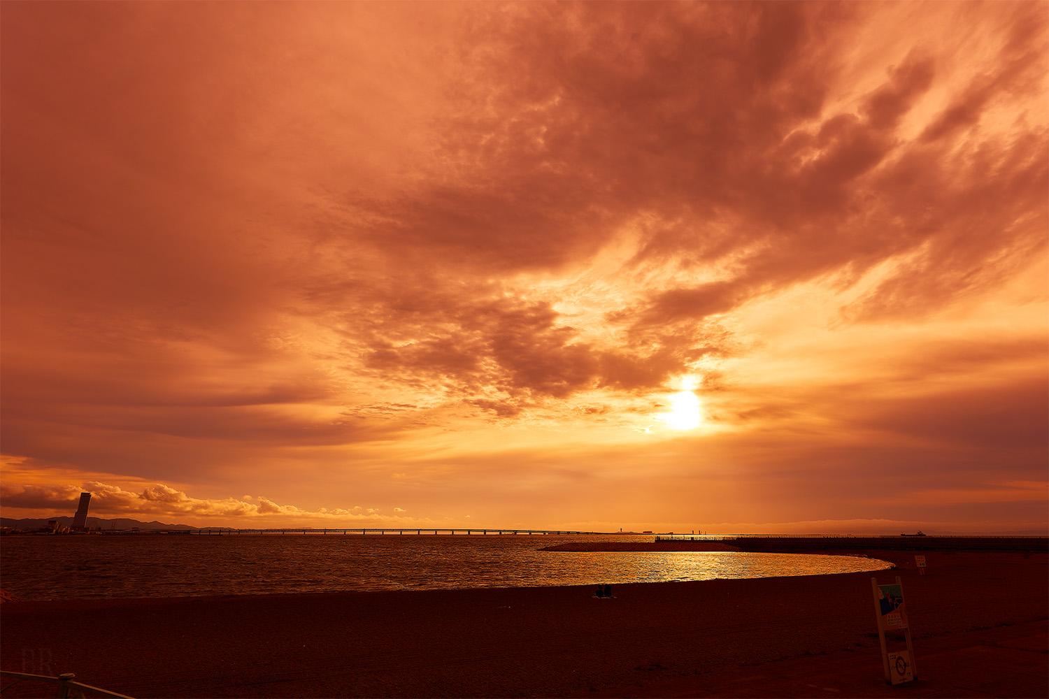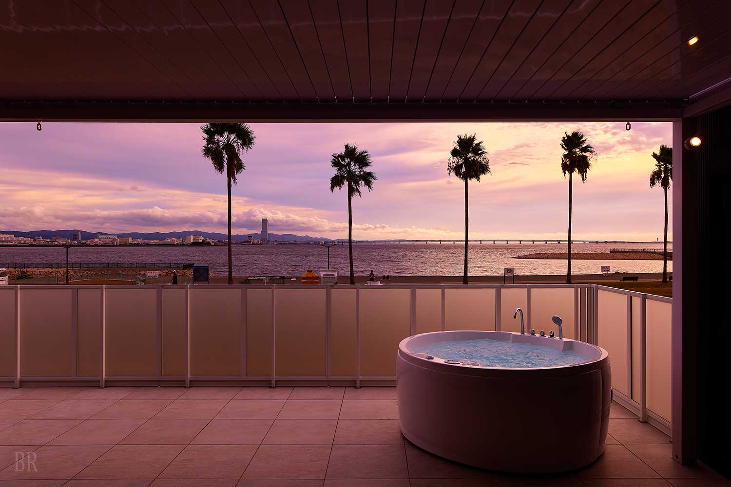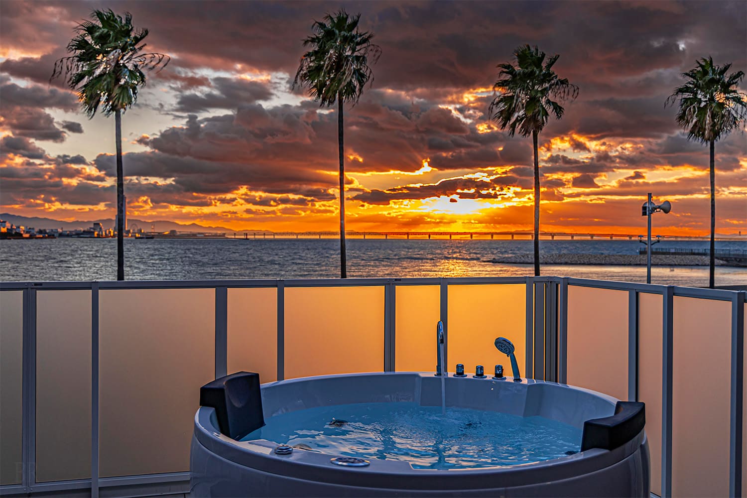すべての客室から大阪湾の青い海と、心奪われる夕焼けを一望することができます。