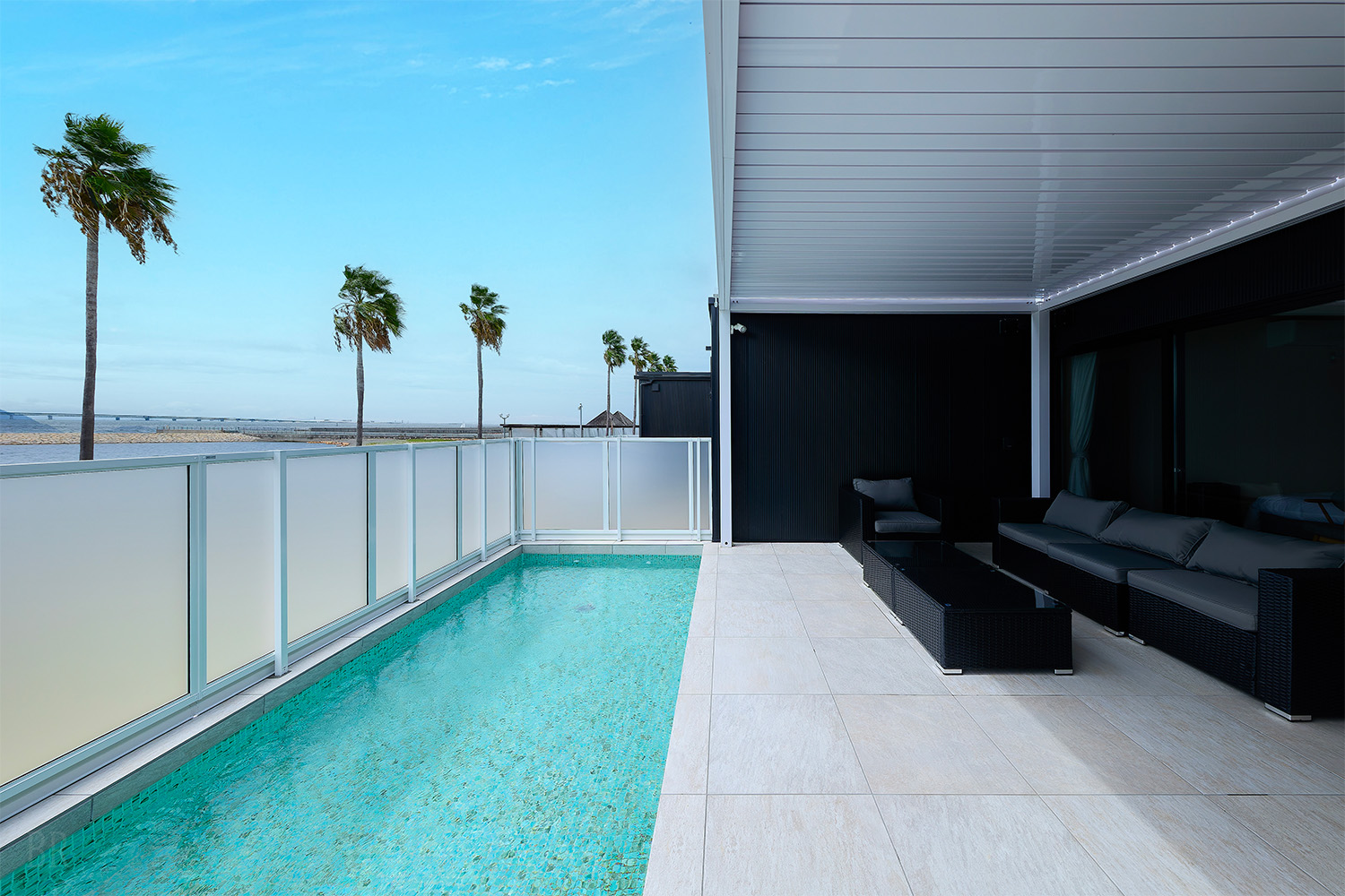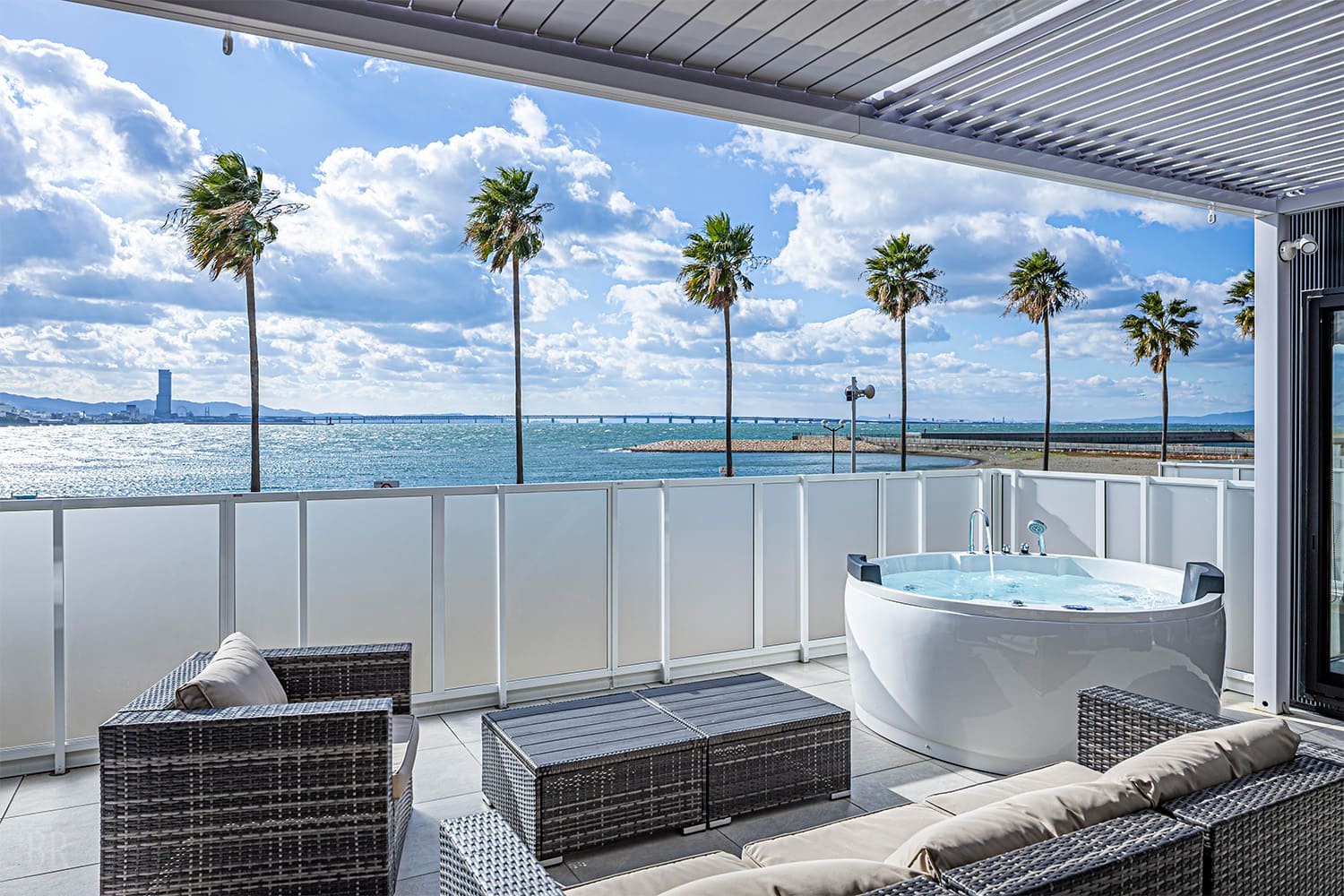 フェンスで外部からの視線を遮ったプライベート設計により、周囲を気にせず、自分たちだけの贅沢なひとときをお過ごしいただけます。